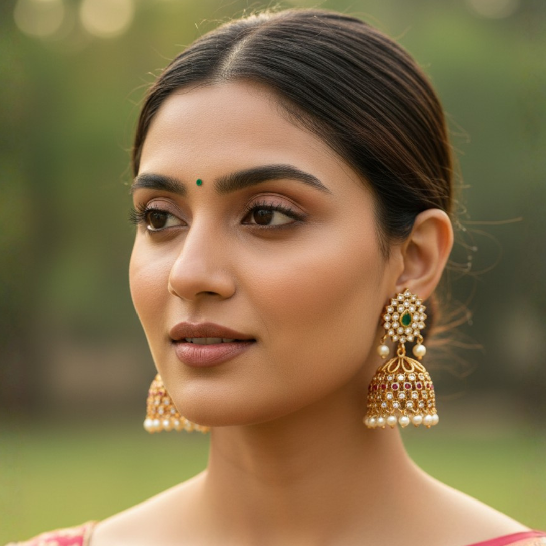 | Stone Type | Synthetic Emerald, Ruby, and White Polki/Cubic Zirconia |
