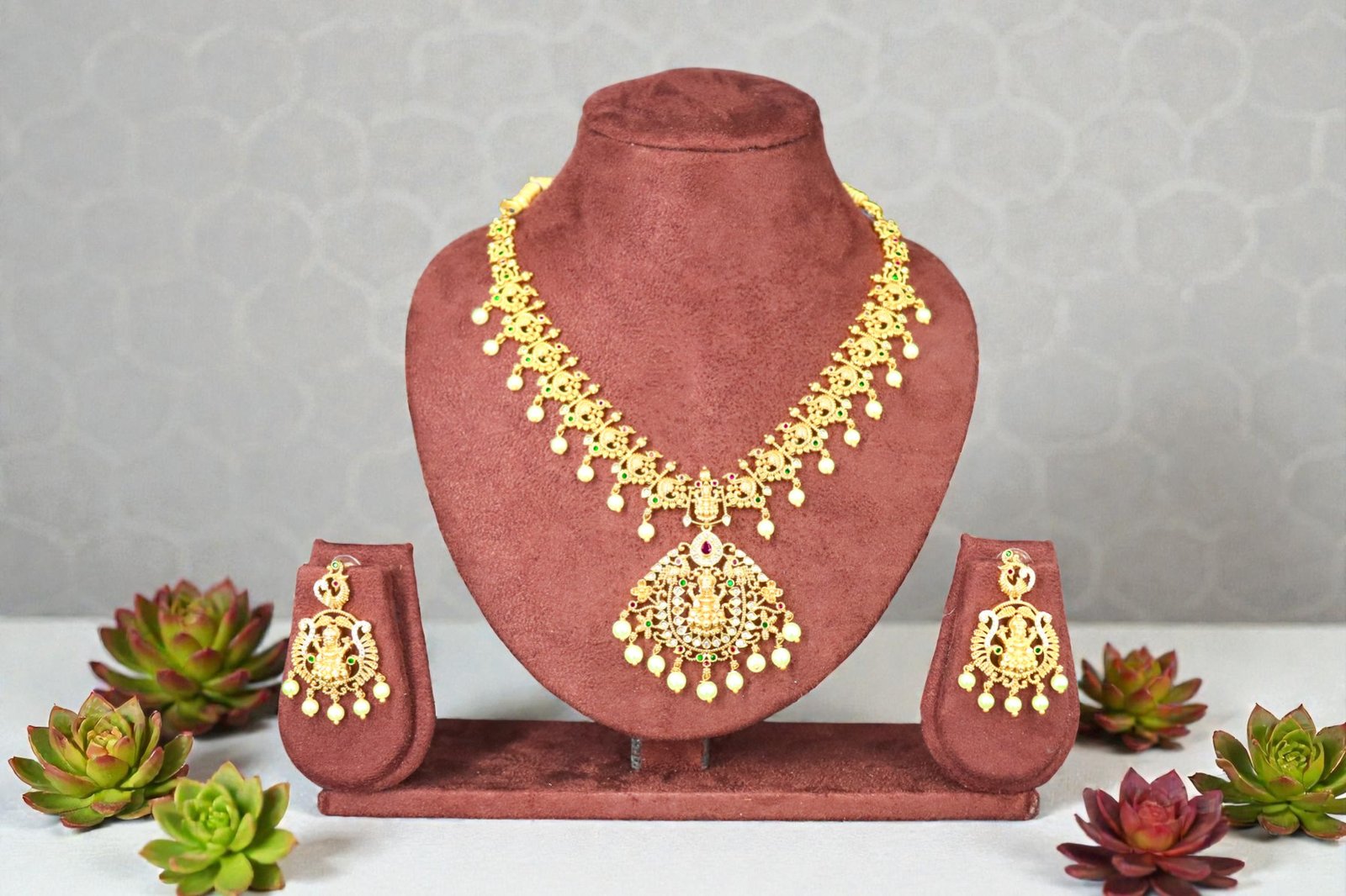 Be the first to review “Temple Jewelry Inspired Antique Gold-Plated Lakshmi Necklace & Earrings Set”