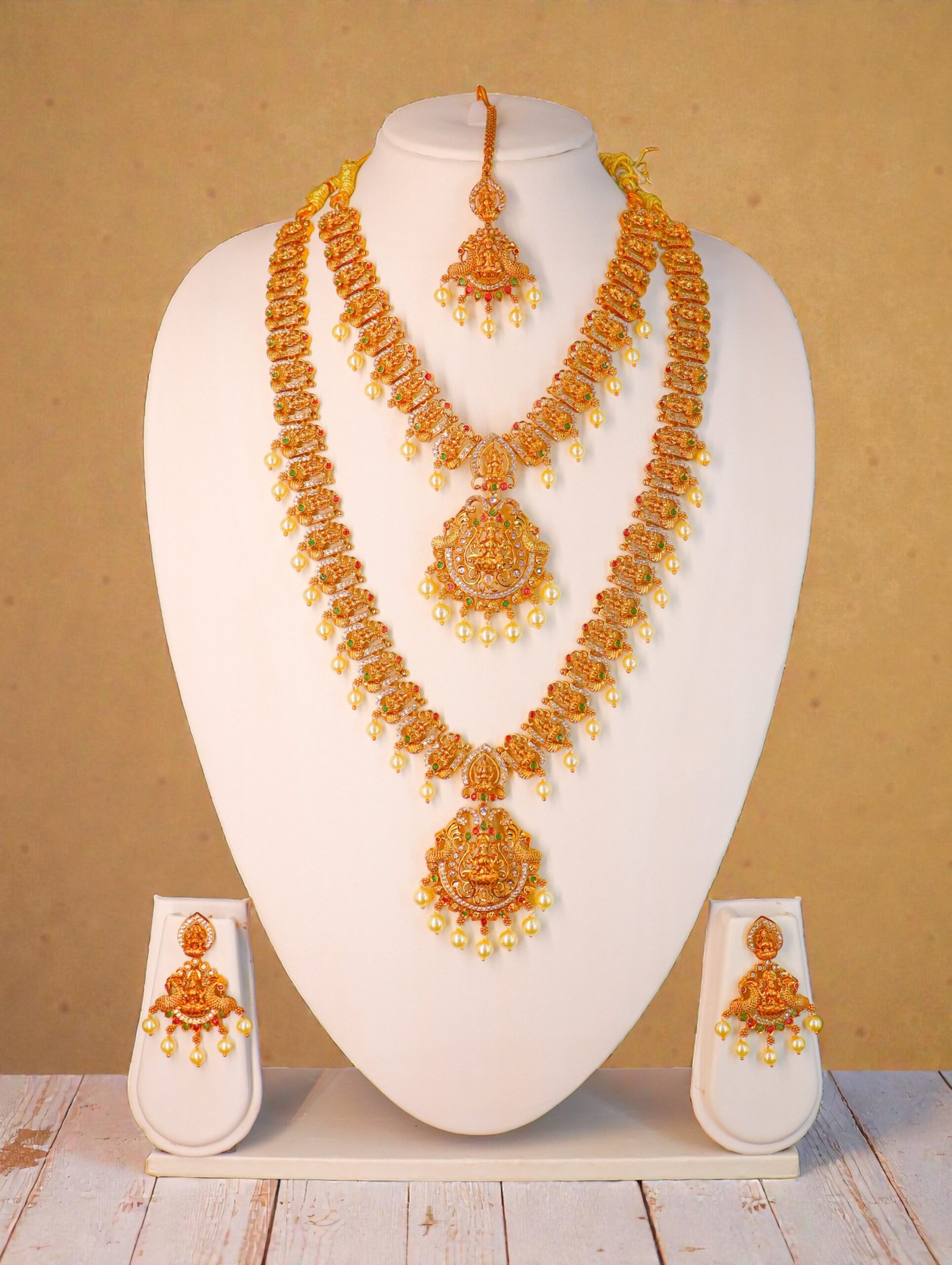 Set Includes 1 Short Necklace, 1 Long Haram, 2 Earrings, 1 Maang Tikka
